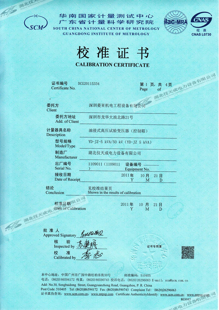 轉(zhuǎn)載:"YD-JZ-5kVA/50kV油浸式高壓試驗(yàn)變壓器的資質(zhì)證書(shū)" 請(qǐng)注明來(lái)源于儀天成電力。 更多技術(shù)問(wèn)題請(qǐng)致電儀天成電力客戶服務(wù):027-87876585,技術(shù)部專(zhuān)線:027-87876585,在線客服:719388481