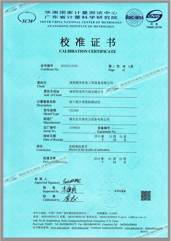 轉(zhuǎn)載:"YTC309抗干擾介損自動(dòng)測(cè)試儀鑒定證書" 請(qǐng)注明來(lái)源于儀天成電力。 更多技術(shù)問(wèn)題請(qǐng)致電儀天成電力客戶服務(wù):027-87876585,技術(shù)部專線:027-87876585,在線客服: